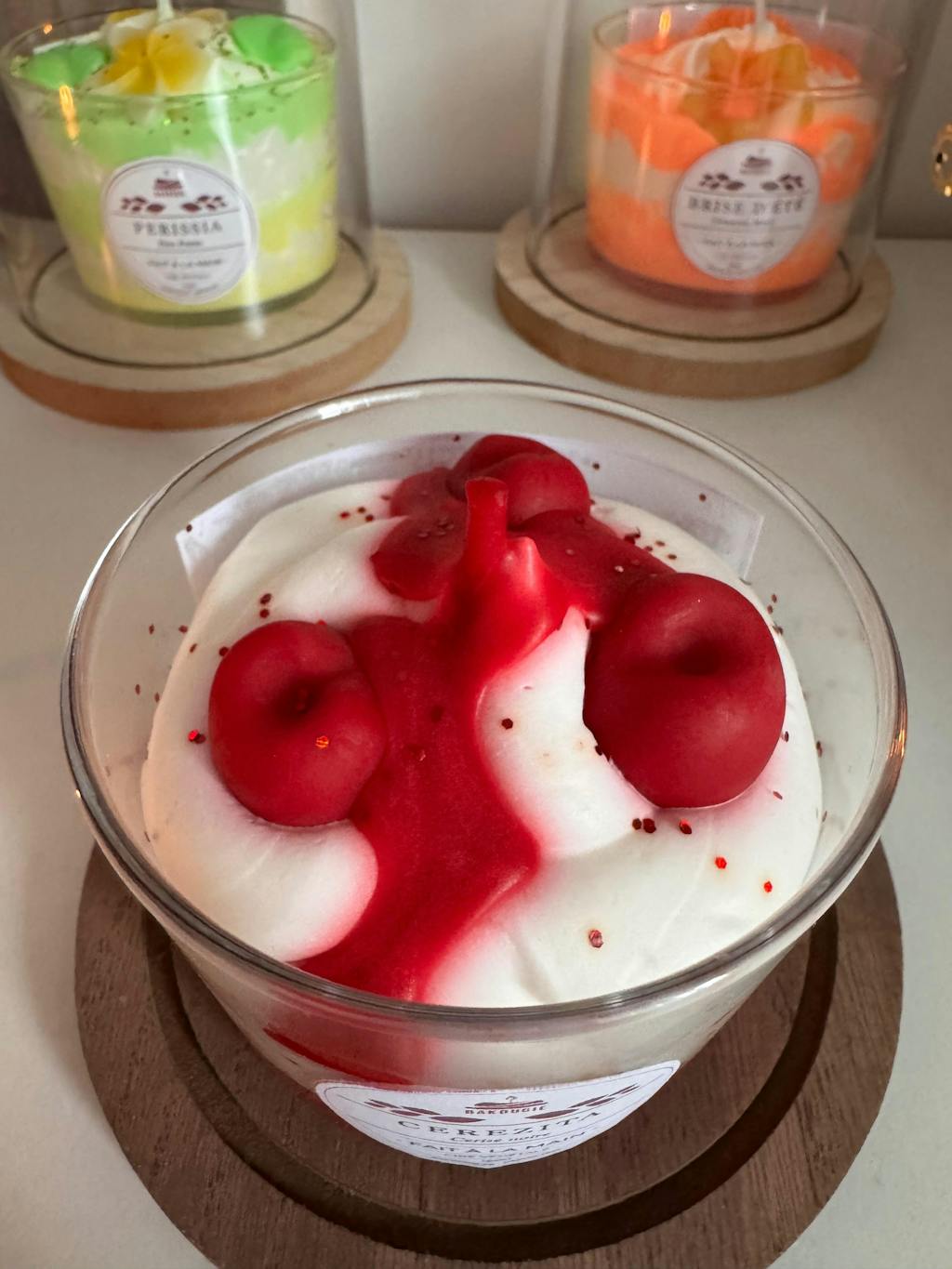 Elle fais partie de mes préférés l'odeur est whaouuu j'aime énormément cette odeur de fou qui me fais penser au bonbon Krema cerise je fond devant cette bougie je vais la manger tellement elle sent bon 🤣