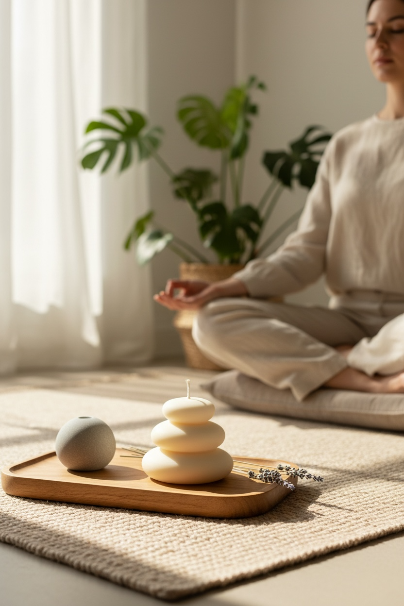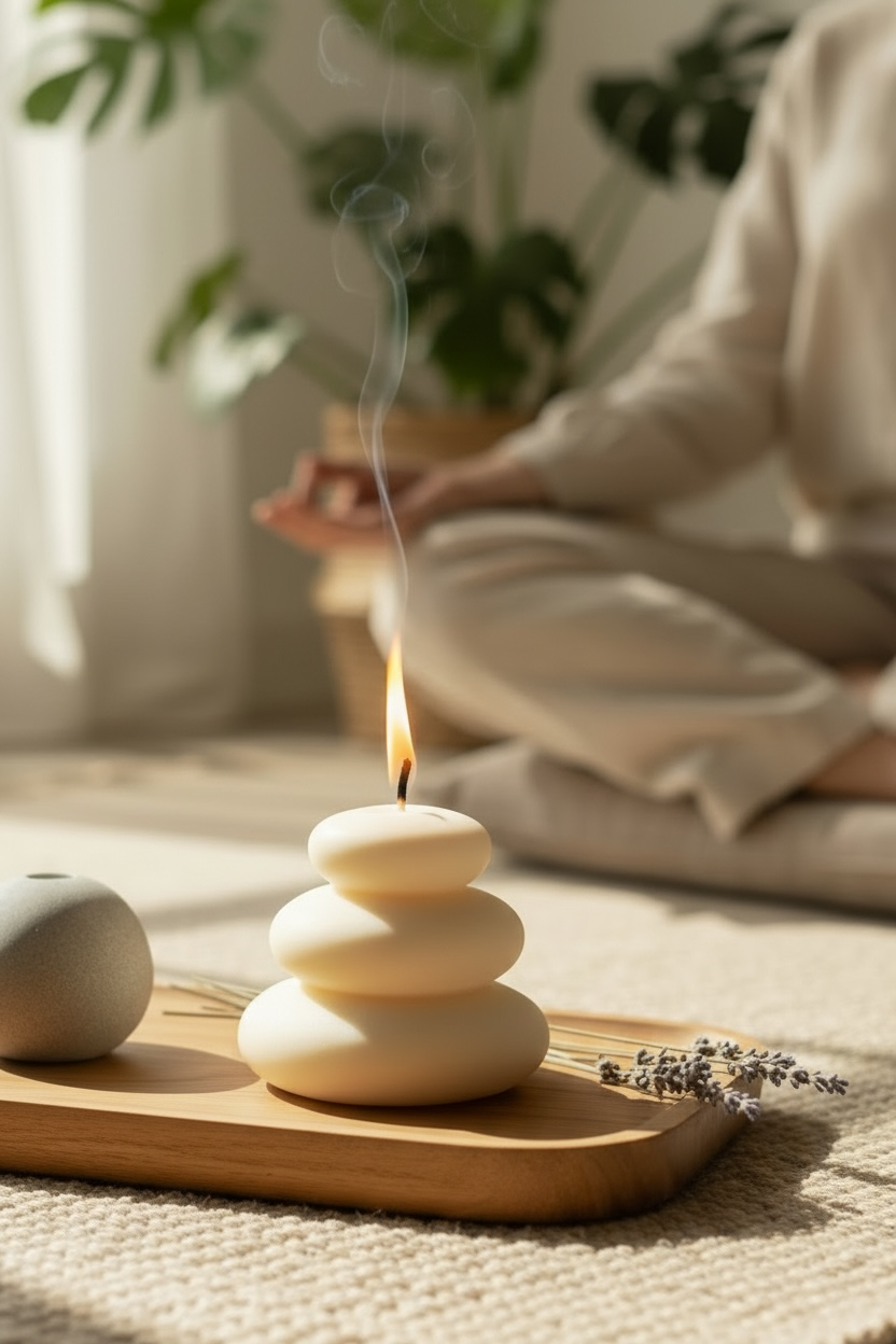 Astuce Méditation : allumez Pile de Galets lors d’un moment calme pour transformer votre intérieur en véritable cocon apaisant.